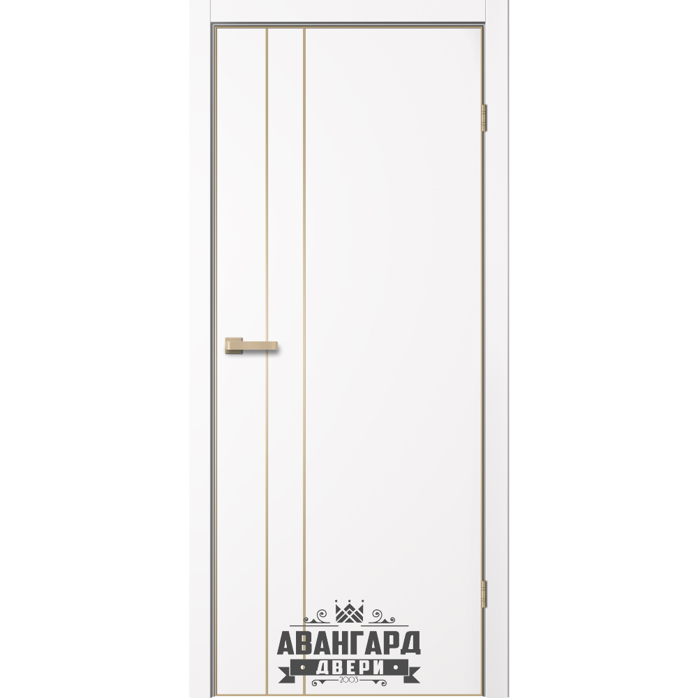 Дверь межкомнатная Тринити 02 ПЭТ Цвет: Арктик, кромка шампань (золото)